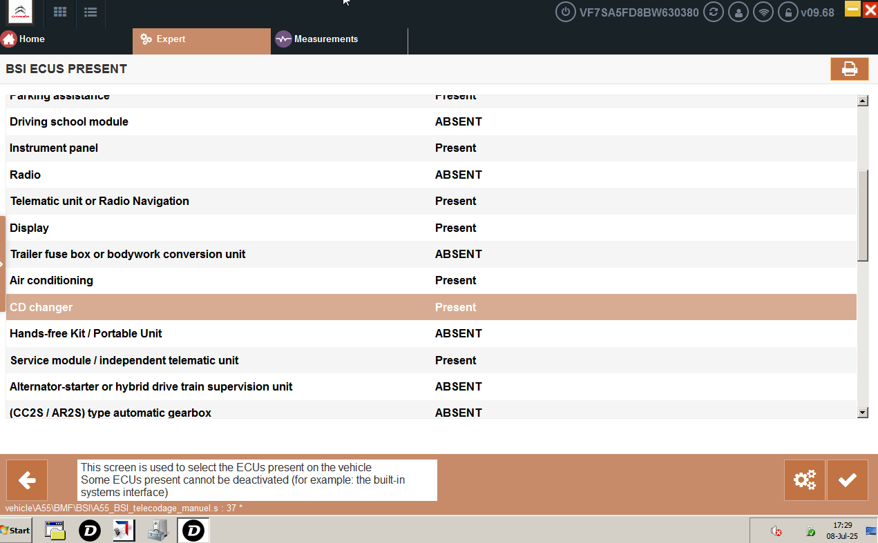 The bluetooth module that I bought had a video in the description on how to enable the CD changer, but that was for a different model without the TFT screen that my DS3 Racing has. I ended up finding the option to enable the CD changer in the Telematics/RTx menu. Also, I had to use expert mode to be able to make adjustments. After that, I also found that I needed to enable the CD changer ECU in the BSI by going to BSI -> ECUS PRESENT -> CD Changer